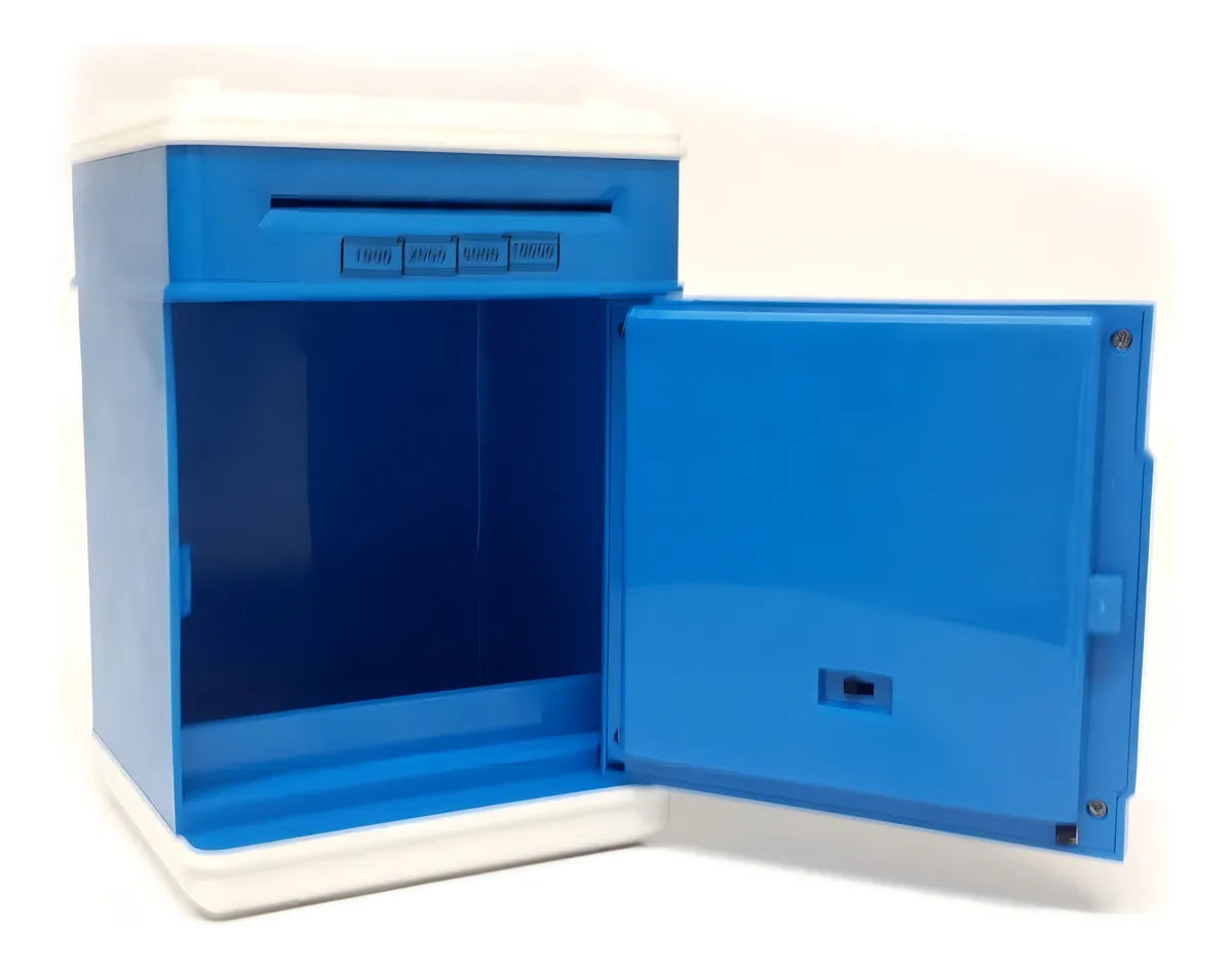 Fabricada con ABS de alta calidad, esta caja fuerte tiene entrada automática de billetes con un sistema de tracción y una entrada para introducir monedas.