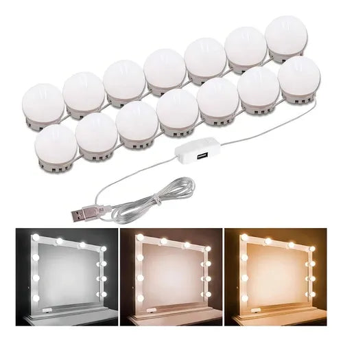 Cada kit contiene 10 bombillas led con un interruptor que permite cambiar de color según se desee. Las tres opciones de luz que puedes escoger por medio del interruptor son: blanco cálido, blanco natural y blanco. El kit también incluye un cable para toma USB, 10 ventosas y una cinta doble faz.