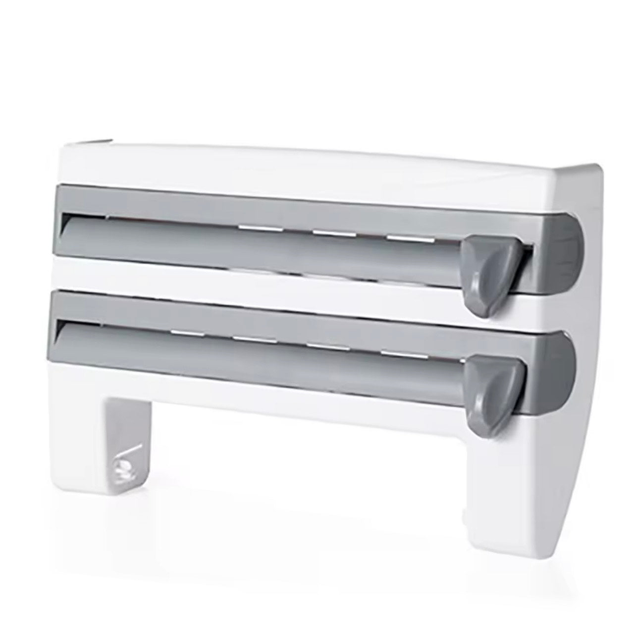 Diseñado para ordenar el papel de aluminio, el film para alimentos y el papel de cocina, siempre a mano y listos para usar. Incluye dos cuchillas deslizantes, ergonómicas y seguras, que facilitan el corte.