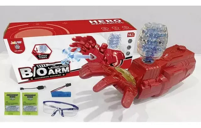 Este brazo robótico inspirado en Iron Man permite a los niños convertirse en pequeños héroes con un lanzador de bolas de hidrogel ideal para juegos al aire libre.