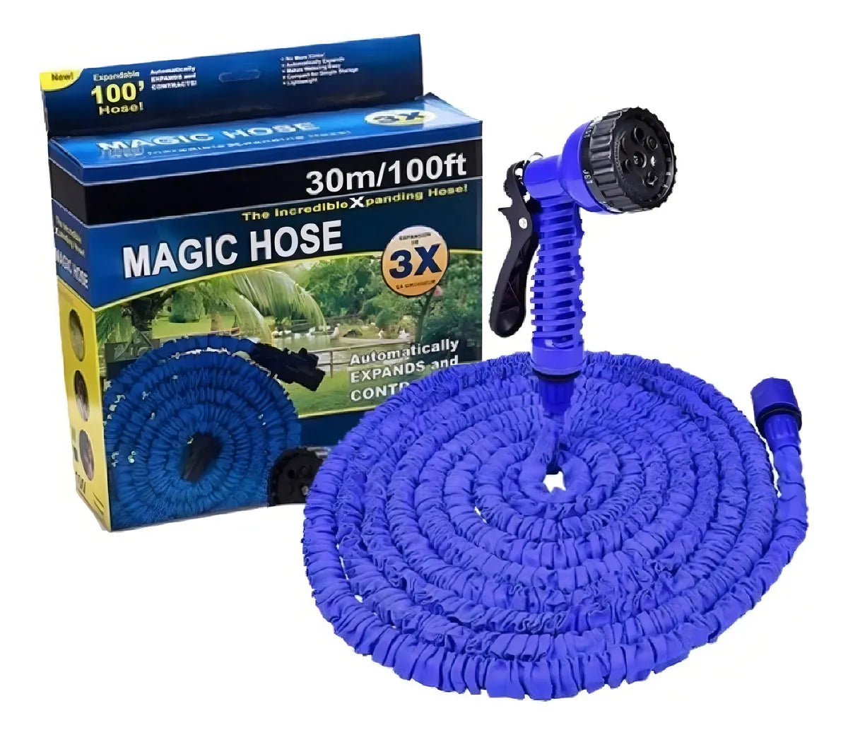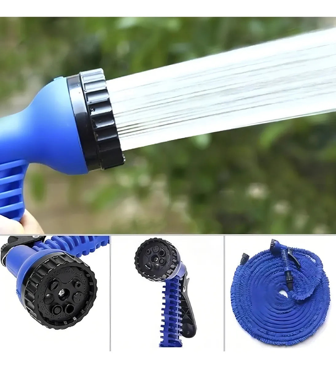 La Manguera Expandible de 30 Metros/100ft es la solución ideal para tus necesidades de riego en el jardín. Esta manguera se expande hasta 30 metros, ofreciendo una longitud suficiente para cubrir grandes áreas. Es extremadamente ligera y de alta calidad, lo que la hace resistente y fácil de usar, guardar y transportar. Incluye una pistola multiusos para mayor versatilidad. Su material de tela impermeable asegura durabilidad y resistencia. Además, es ajustable, anti-abrasión, anti-corrosión, flexible y suave, lo que la convierte en una herramienta indispensable. Viene con accesorios como acople y pistola, garantizando una experiencia completa y satisfactoria. Ideal para cualquier tipo de jardín.