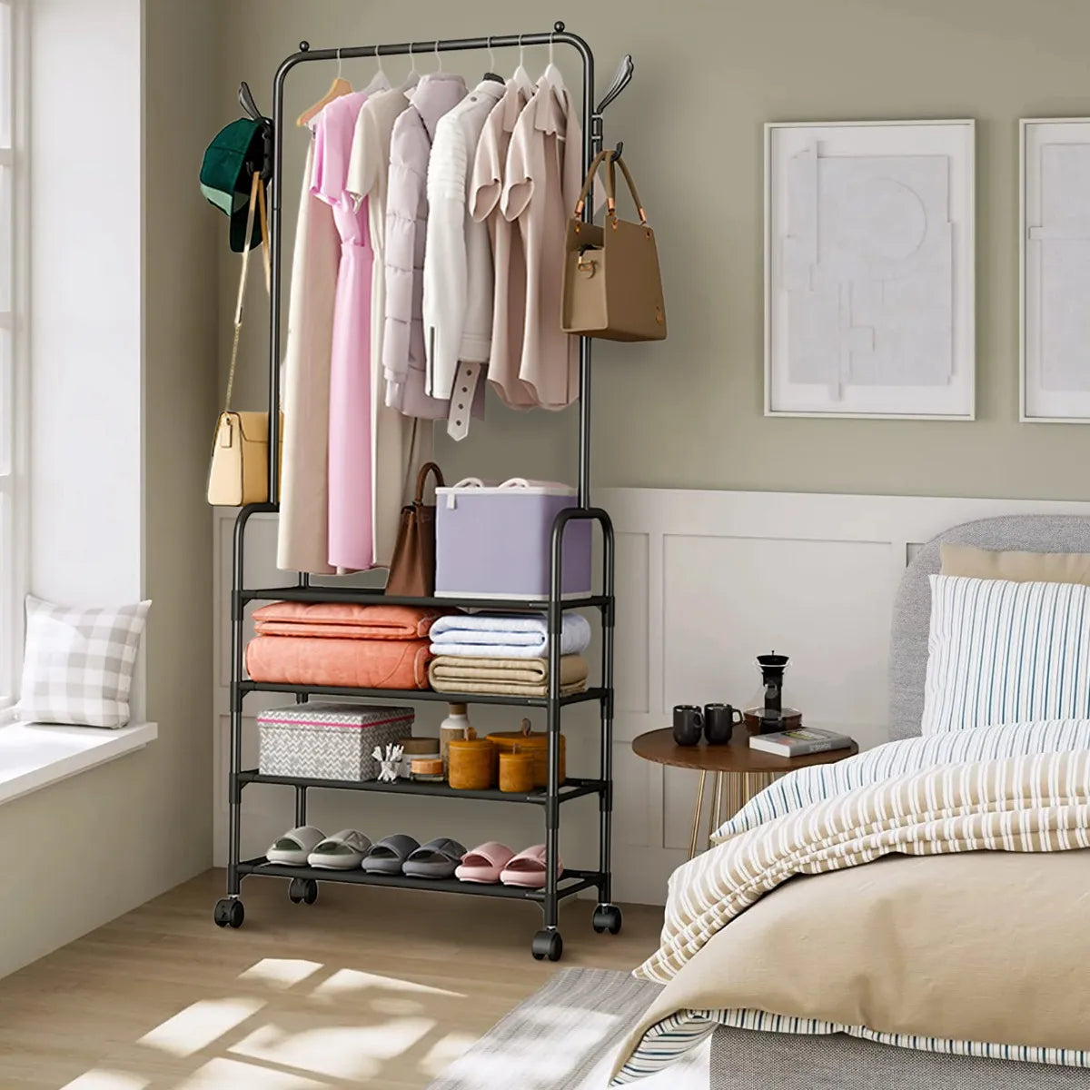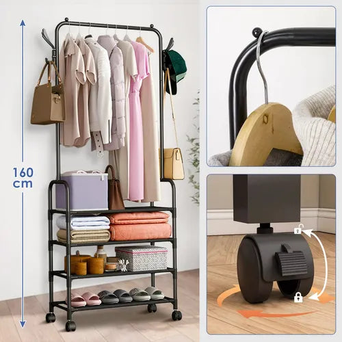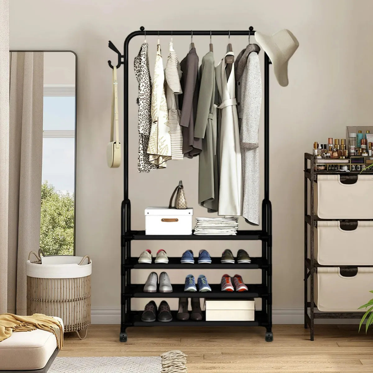 El tamaño del organizador de ropa y zapatos es de 60x26x165cm, la parte superior es un perchero, que se puede utilizar para colgar ropa, bolsos, llaves, bufandas y sombreros, con 4 capas de espacio de almacenamiento en el medio para zapatos, cajas de zapatos, cajas de almacenamiento, cestas y bolsas, etc, proporcionando espacio de acabado extra para el perchero, muy adecuado para uso en el hogar. El perchero es pequeño y no ocupa mucho espacio, y puede almacenar todo tipo de artículos diversos, haciendo que el espacio en casa esté ordenado y limpio.