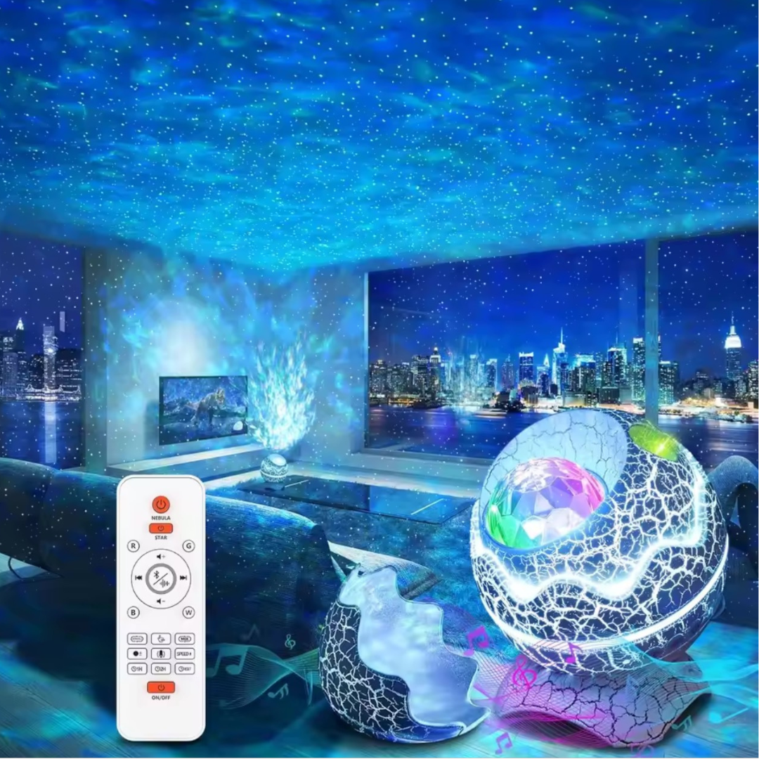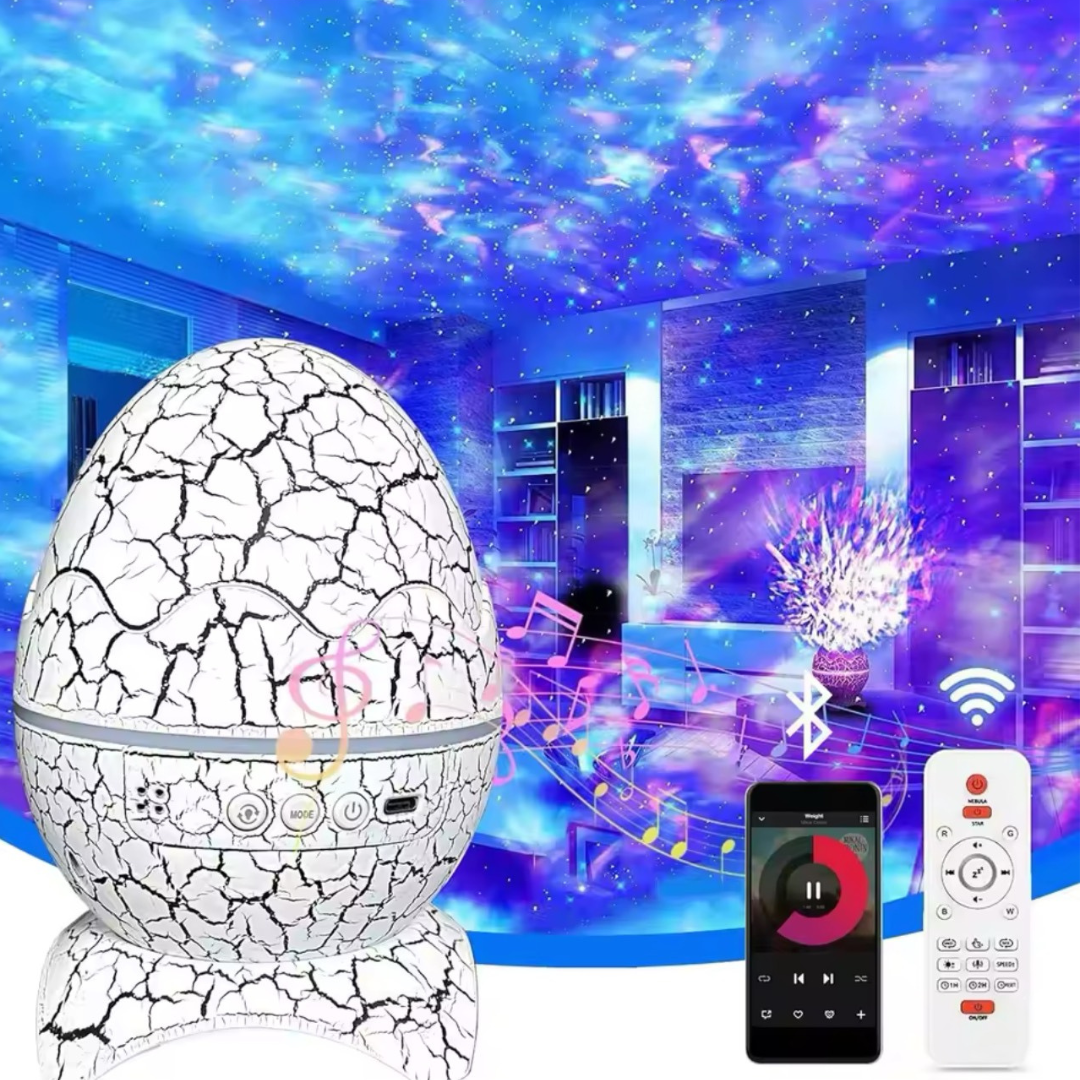 Proyector dino huevo con reproductor de música inalámbrico, luz nocturna, nebulosa, temporizador y control remoto