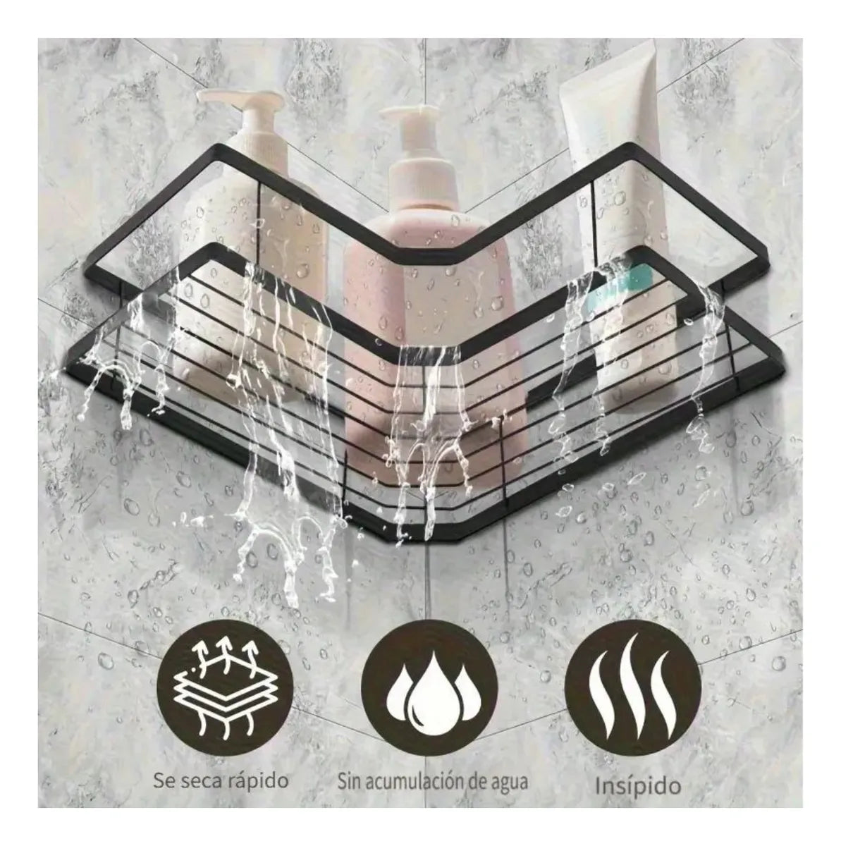 Su innovador diseño esquinero permite una fácil colocación en cualquier ducha, utilizando ventosas o adhesivo, según su preferencia. Cada estante ofrece un espacio óptimo para jabones, champús y otros accesorios esenciales, evitando el desorden y mejorando la funcionalidad de su baño.