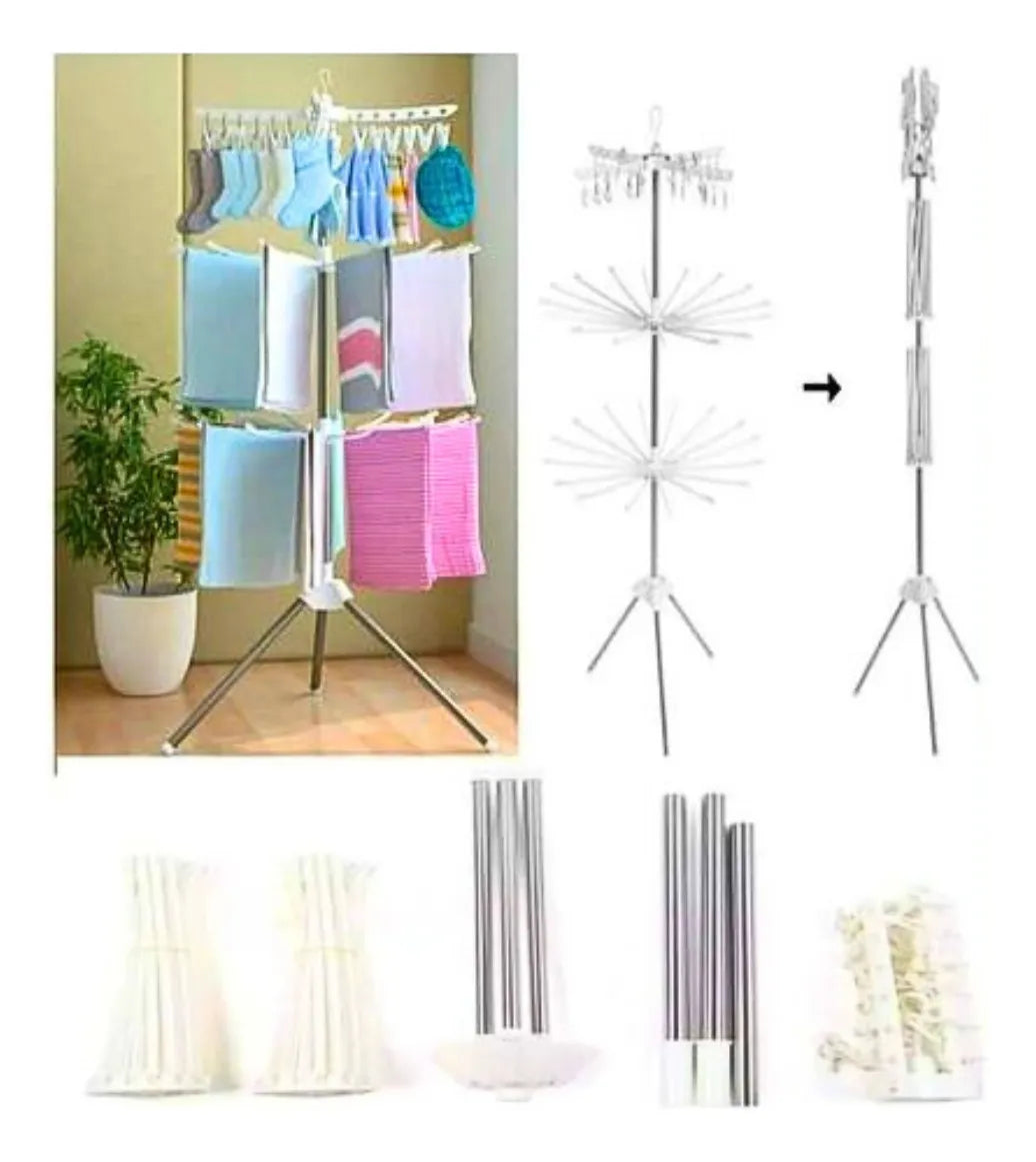 La percha se puede plegar de forma compacta para guardarla fácilmente cuando no esté en uso. Se puede colocar fácilmente en un lugar estrecho y ahorra espacio.