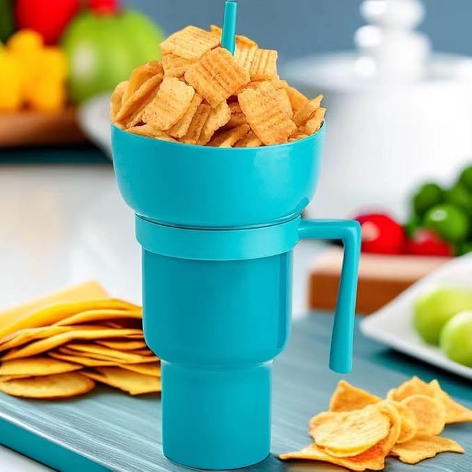 Disfruta de tus aperitivos y bebidas favoritos con el Vaso Snack 2 en 1, una ingeniosa combinación de vaso y tazón para snacks.